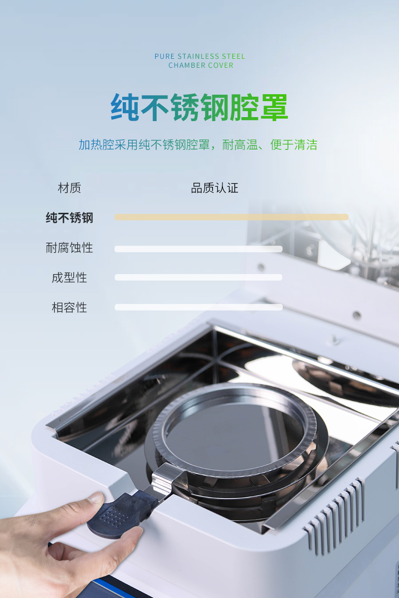 11、加热腔采用纯不锈钢腔罩,耐高温、便于清洁。