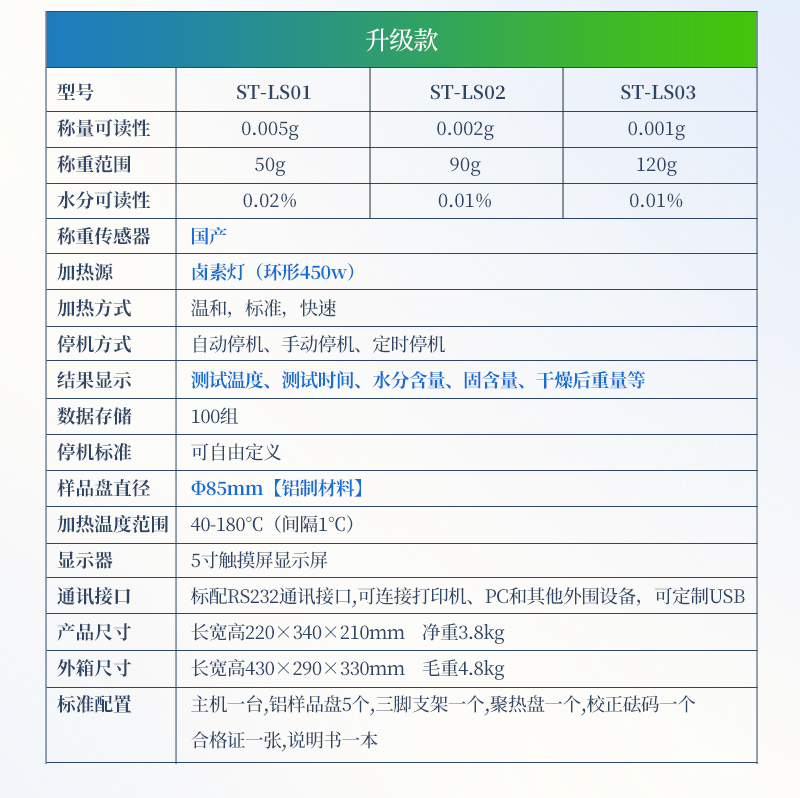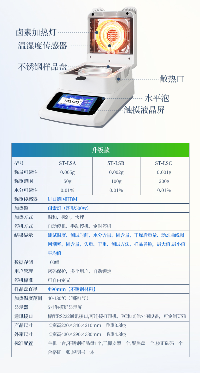 水分可读精度 Moisturereadability | 0.02% | 0.02% | 0.01% | 0.01% |