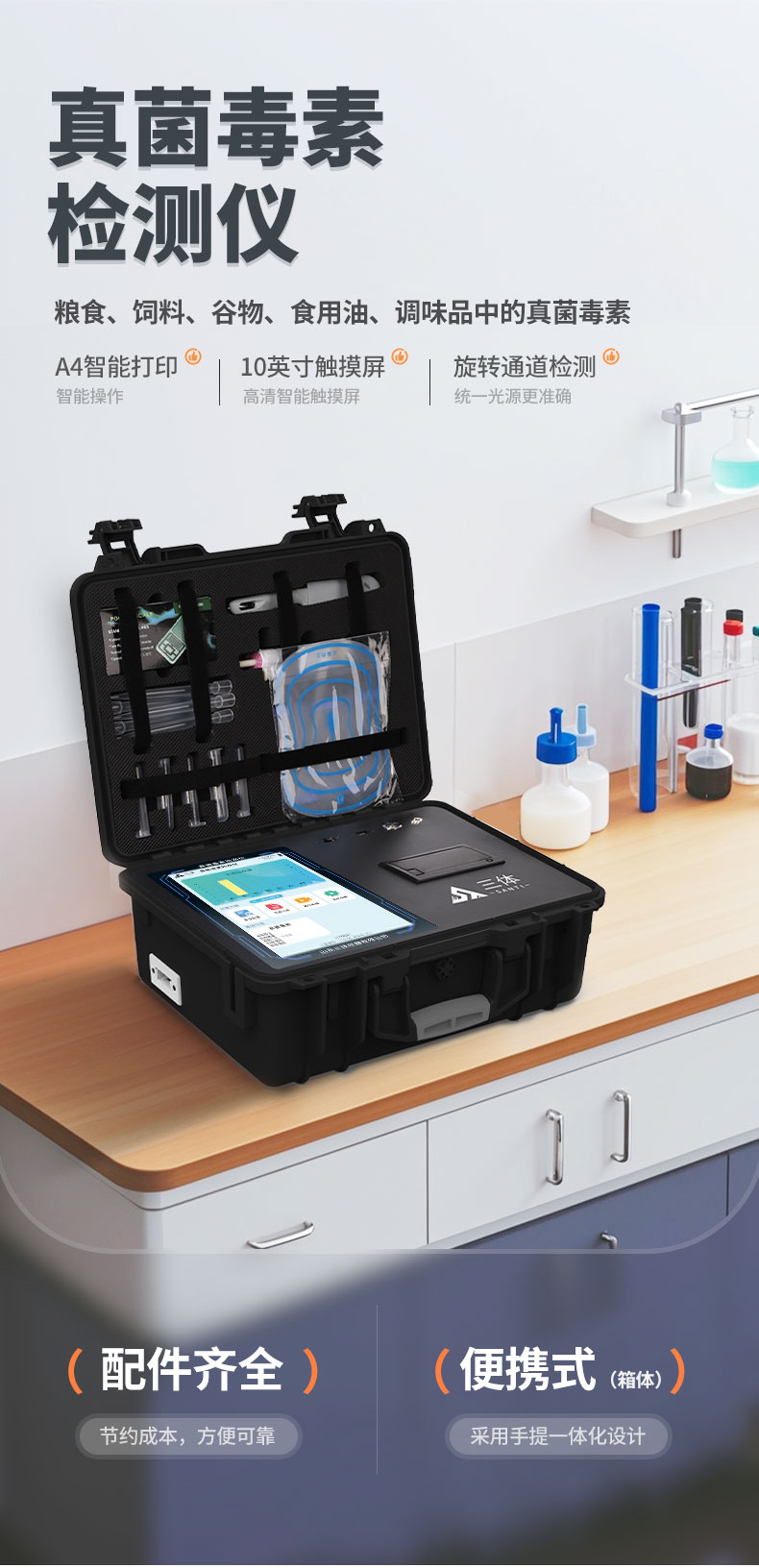 星空体育有限公司怎么样 生产的真菌毒素检测仪应用竞争抑制免疫层析的技术原理,通过就是通过待检测物与抗体结合的方法,分析待检样品中真菌毒素残留。可快速检测粮食、饲料、谷物、食用油、调味品中如玉米、大米、小麦、大麦、糙米、麸皮、稻谷、豆粕、米糠、饲料中的黄曲霉毒素B1、M1、总量,玉米赤霉烯酮、呕吐毒素、T2毒素、赭曲霉毒素、伏马毒素等 。