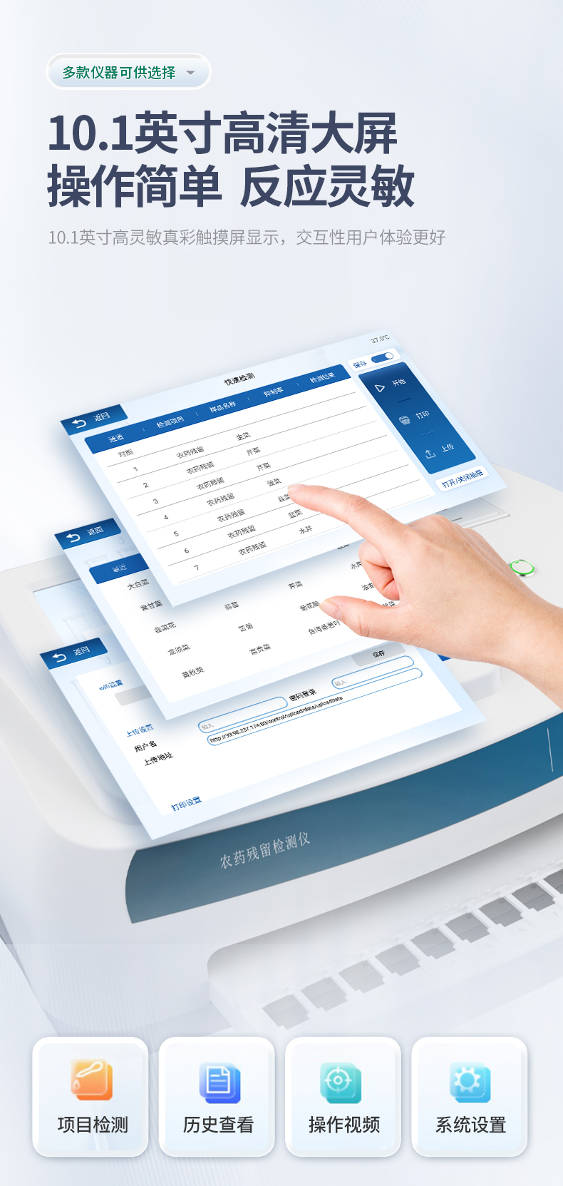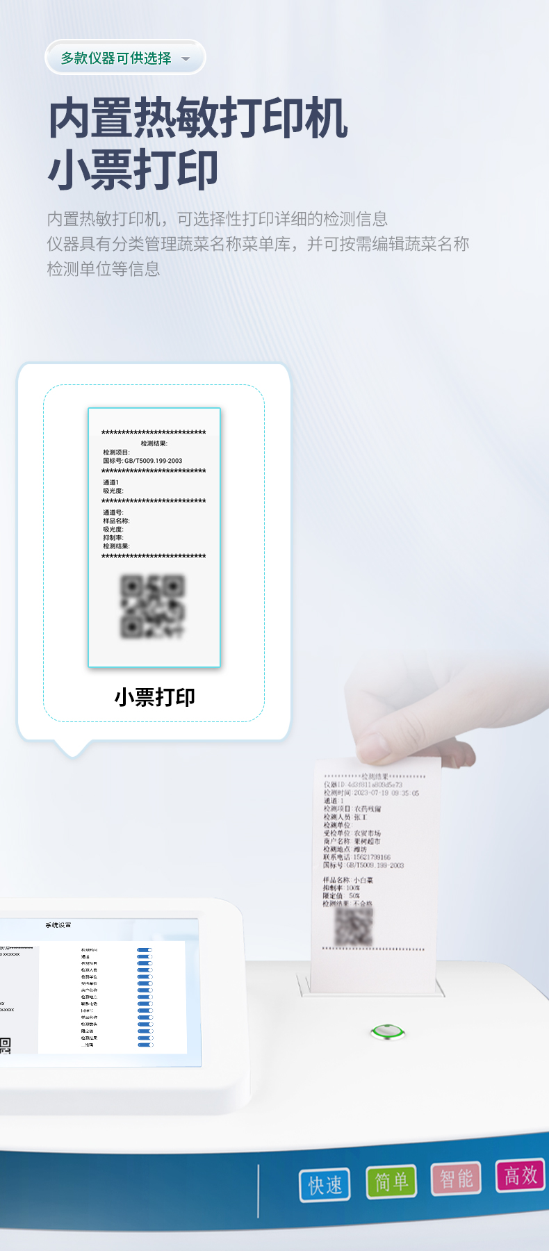 该仪器为星空体育篮球比赛 新研发一款农残快速检测仪,采用国标速测卡,使检测速度更快,操作更加简便。检测标准:依据国家标准方法(GB/T5009.199-2003)以及世界卫生组织WHO、世界粮农组织FAO残留农药检测标准、世界环境保护局EPA参照摄入量等要求来设计。