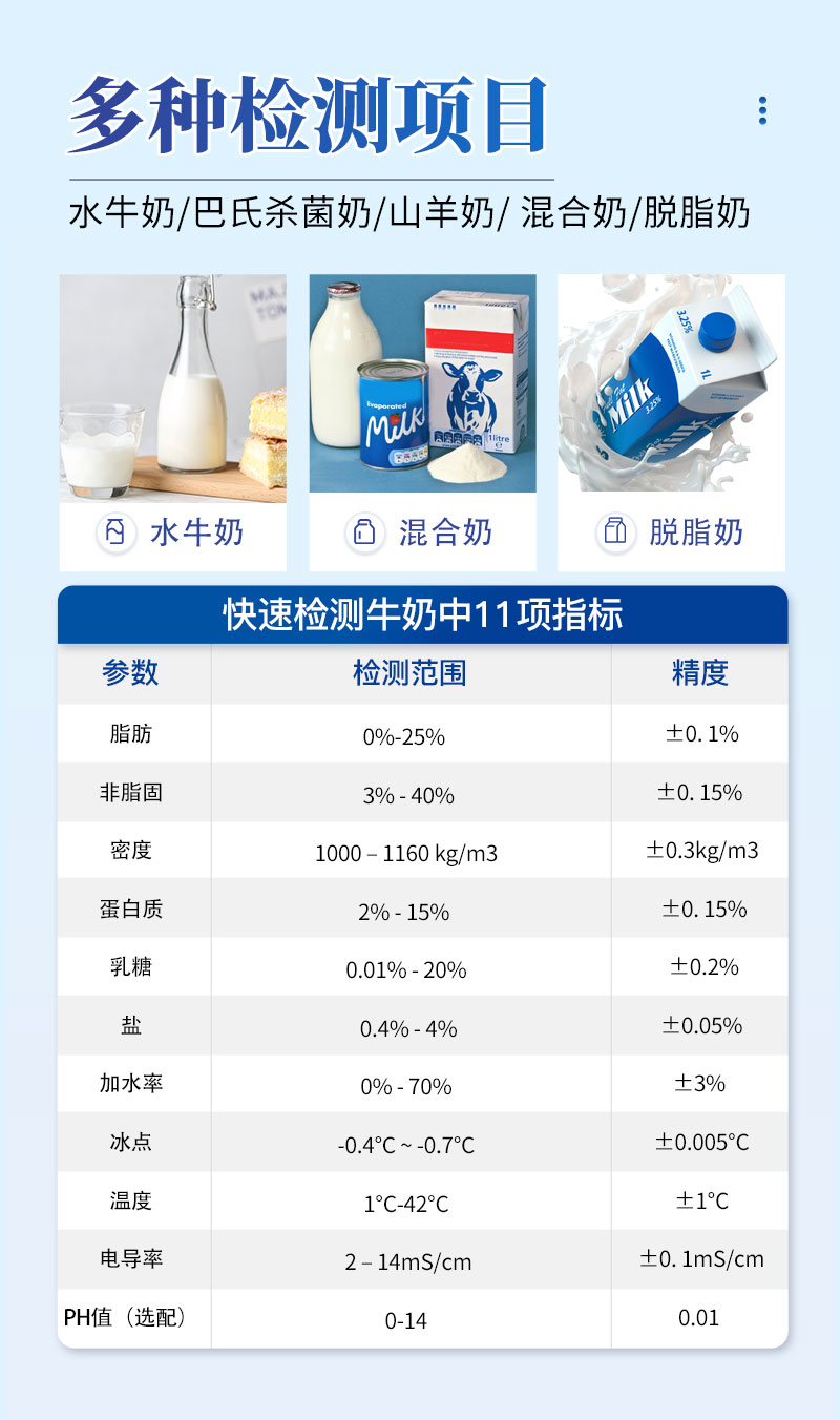 5、牛奶分析仪的标准校准适用于牛奶,羊奶,UHT。