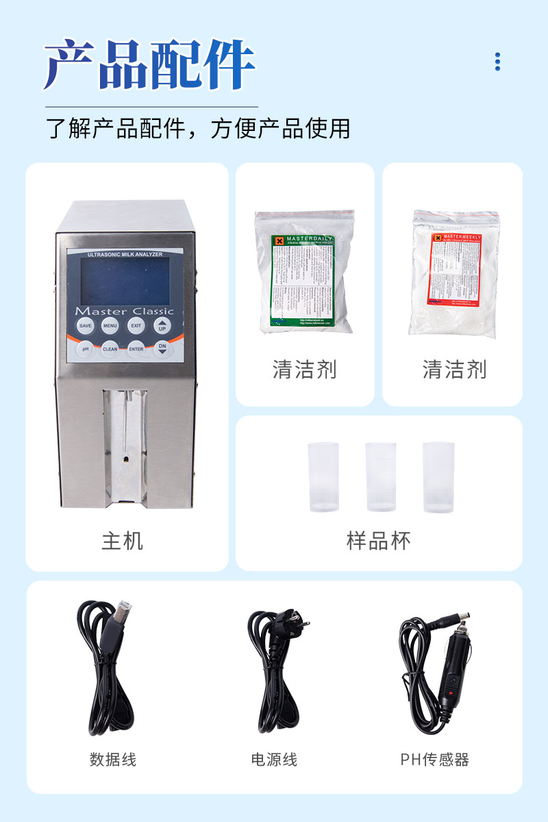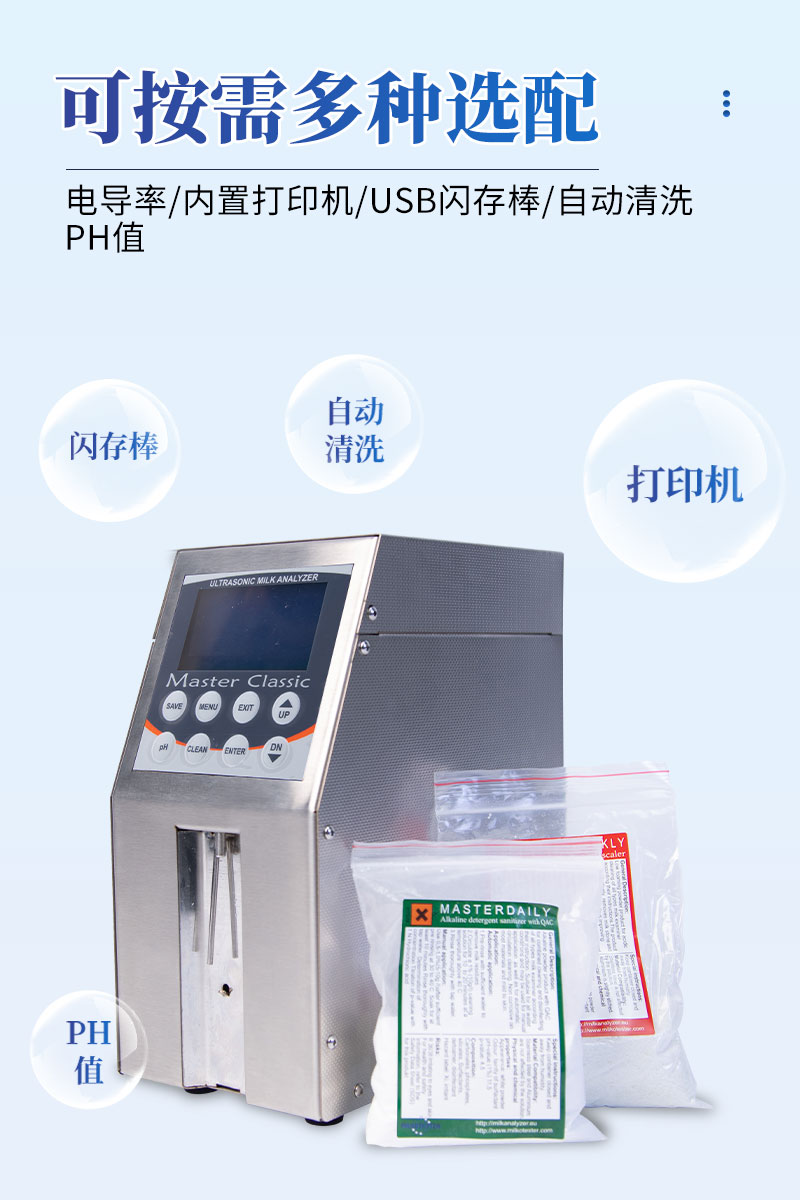 1、MILK CLASSIC是一种高质量可以测量9种牛奶参数的仪器。