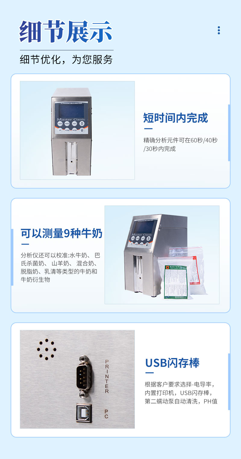 3、是舒适和可靠的牛奶分析仪与精密的传感器, 长寿命和更好 的精度。