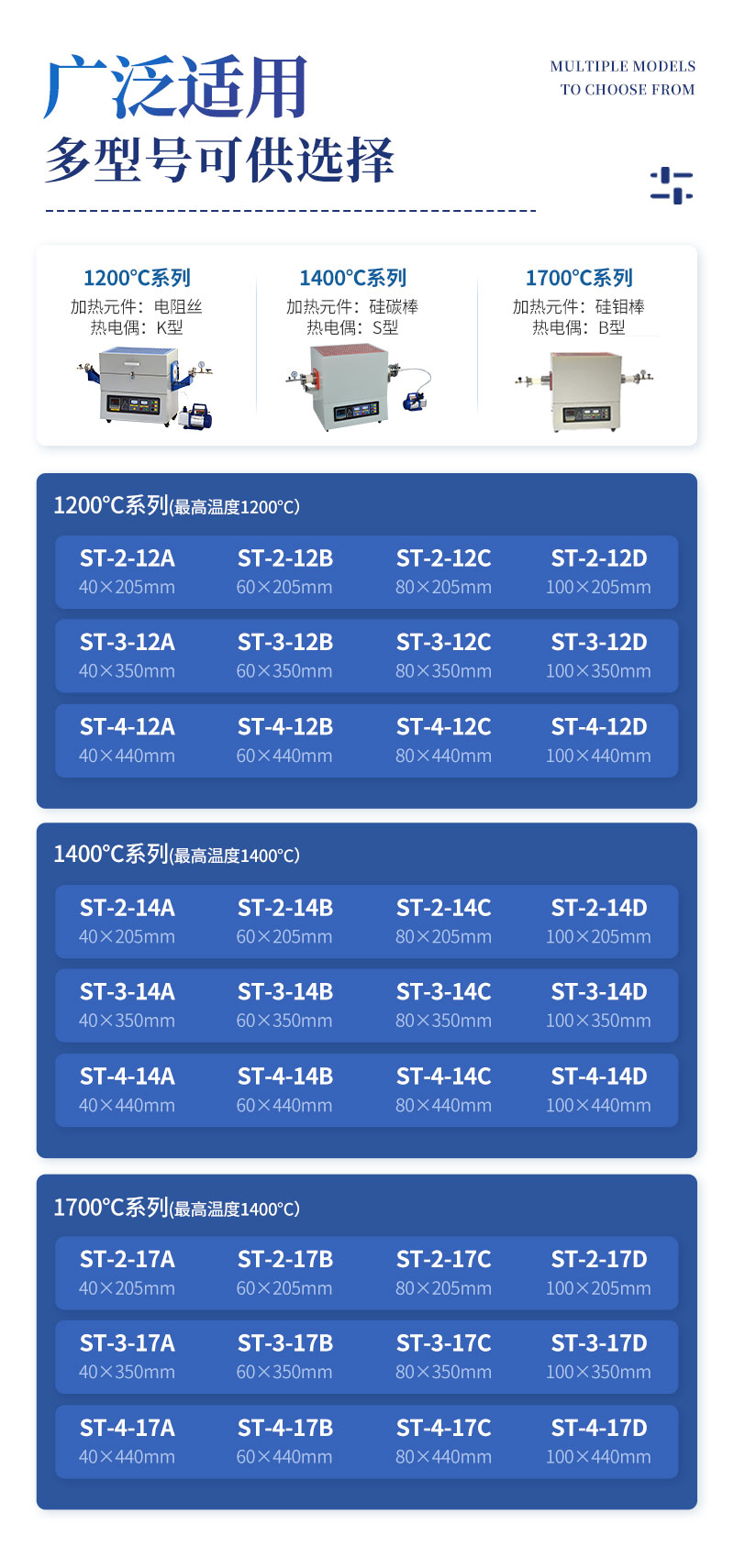 4. 采用完善技术,有单管、双管等多管,卧式、可开启式、立式、单温区、双温区、三温区、四温区、五温区等多种管式炉型;可选择配置耐热钢、高纯石英玻璃、刚玉陶瓷等材料炉管,均温区长,操作简便,密封可靠,综合性能指标较高。
