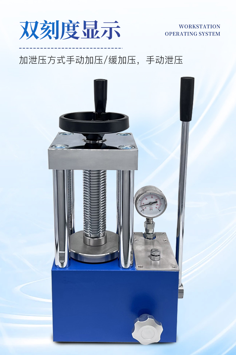 手动压片机该机采用一体式结构,手动液压驱动,两立柱设计,具有造型美观、操作方便、体积小巧、工作空间大等优点,非常适合拖进手套箱内使用;配上特定模具,可对各种粉末材料压制成型,广泛应用于科研、教学、检测、催化、制药等各个领域。