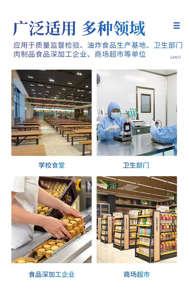该过丙二醛检测仪为集成化食品安全快速检测分析设备,目前已于市场监管局、食品深加工企业、学校食堂、炼油厂、配送中心、商场超市等单位广泛使用