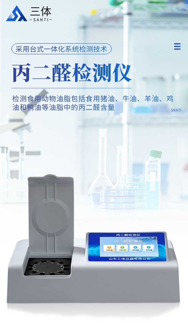 星空体育有限公司怎么样 生产的丙二醛检测仪为集成化食品安全快速检测分析设备,采用台式一体化设计,能够快速检测食用动物油脂包括食用猪油、牛油、羊油、鸡油和鸭油等油脂中的丙二醛含量;仪器预留其他项目检测程序和端口,根据日后需求可进行远程升级